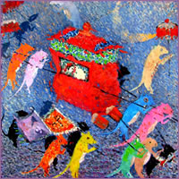 He Kun, a highly inventive artist working primarily in woodblock printmaking. He lives and works in Yunnan province in the South Western region of China, the home of many rural minority communities.
